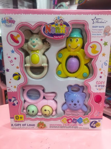 Cute & safe 4-piece rattle toy set for newborns 💖