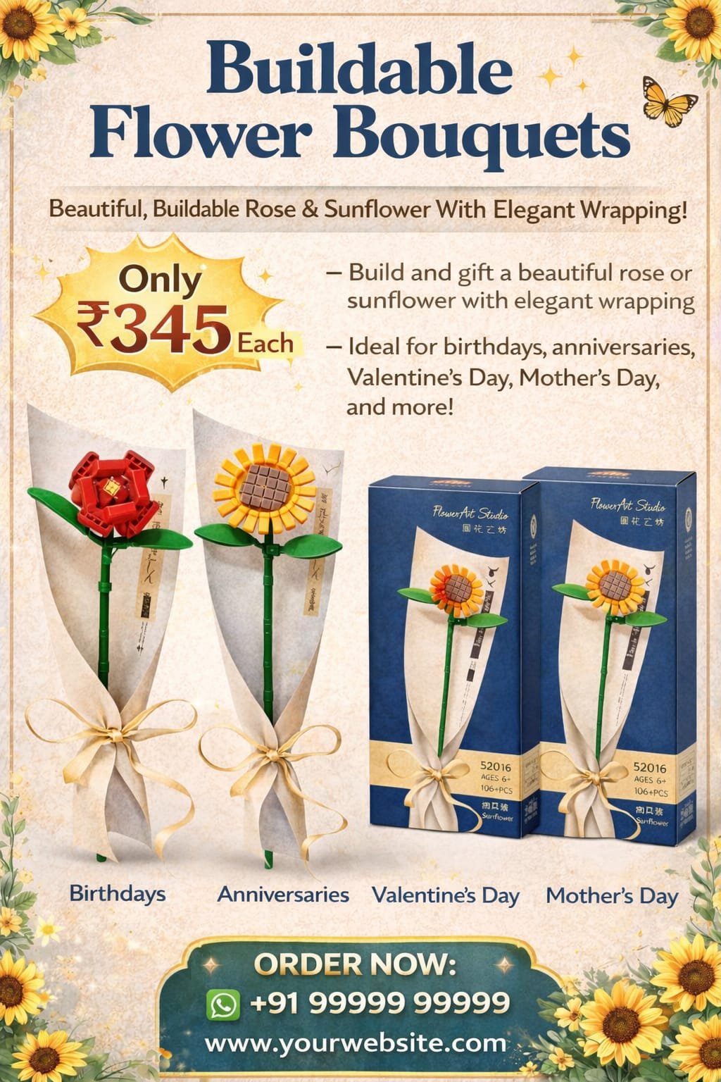Present this beautiful buildable flower bouquet – a perfect mix of creativity & elegance!