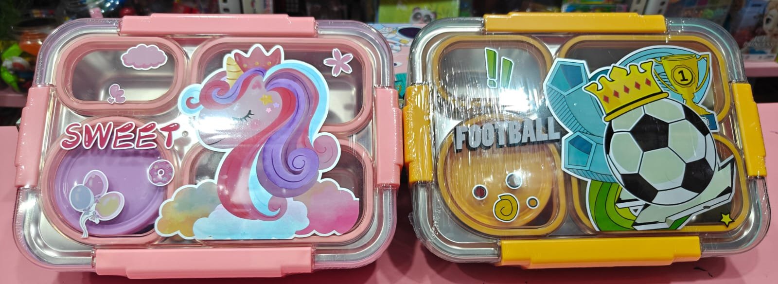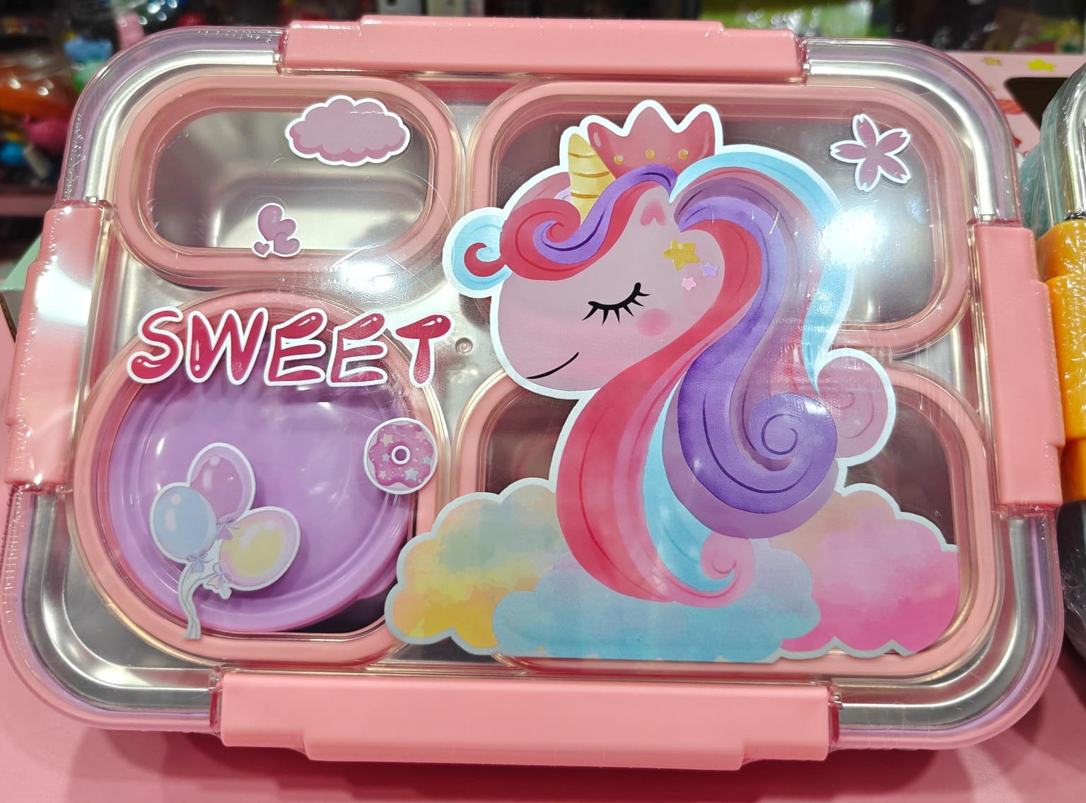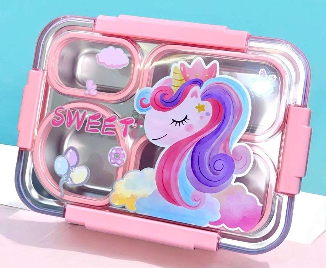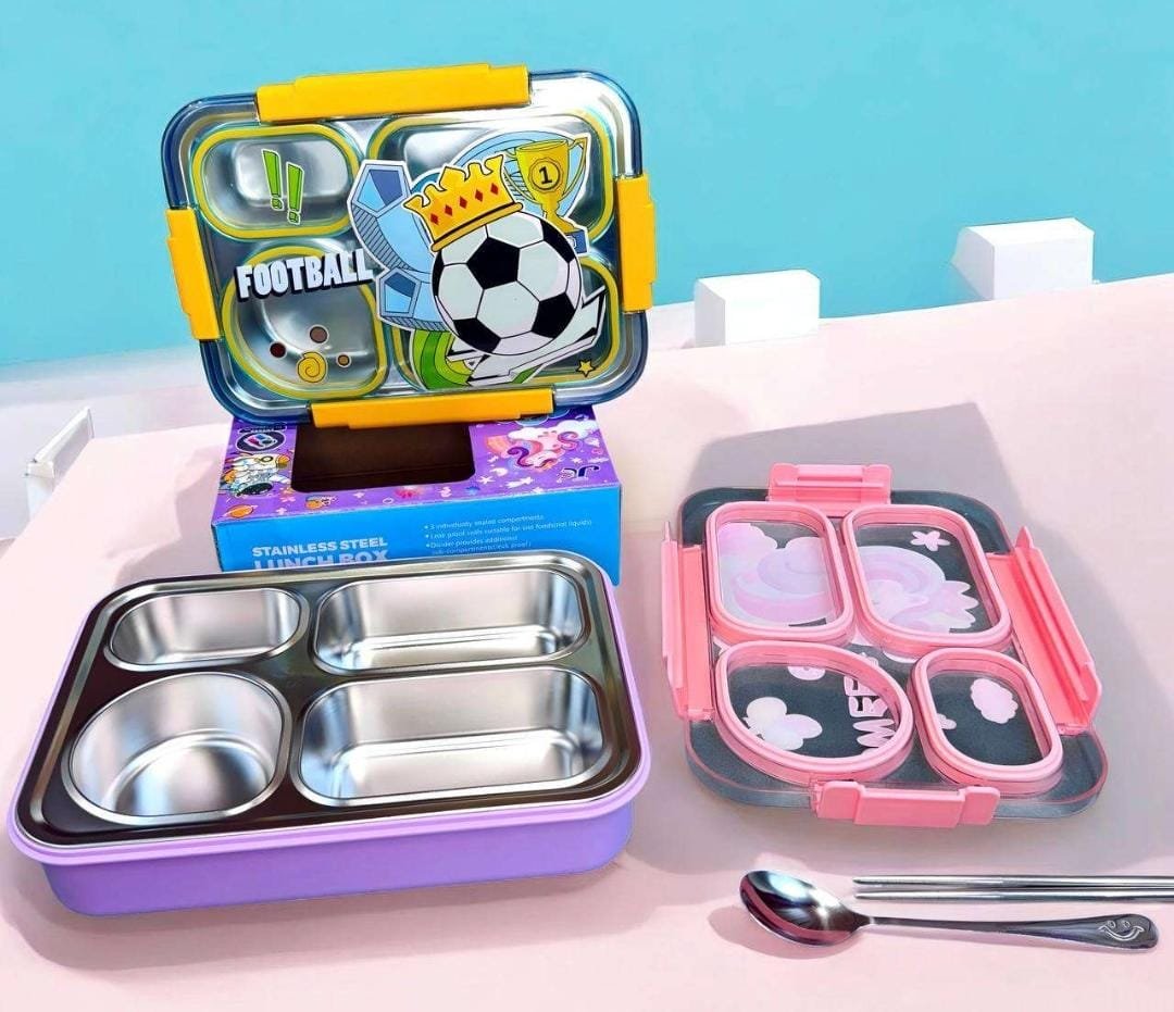Esmi®- 🥗 Premium Stainless Steel Kids 3 section Lunch Box with Chutney Box & Cutlery 🍱