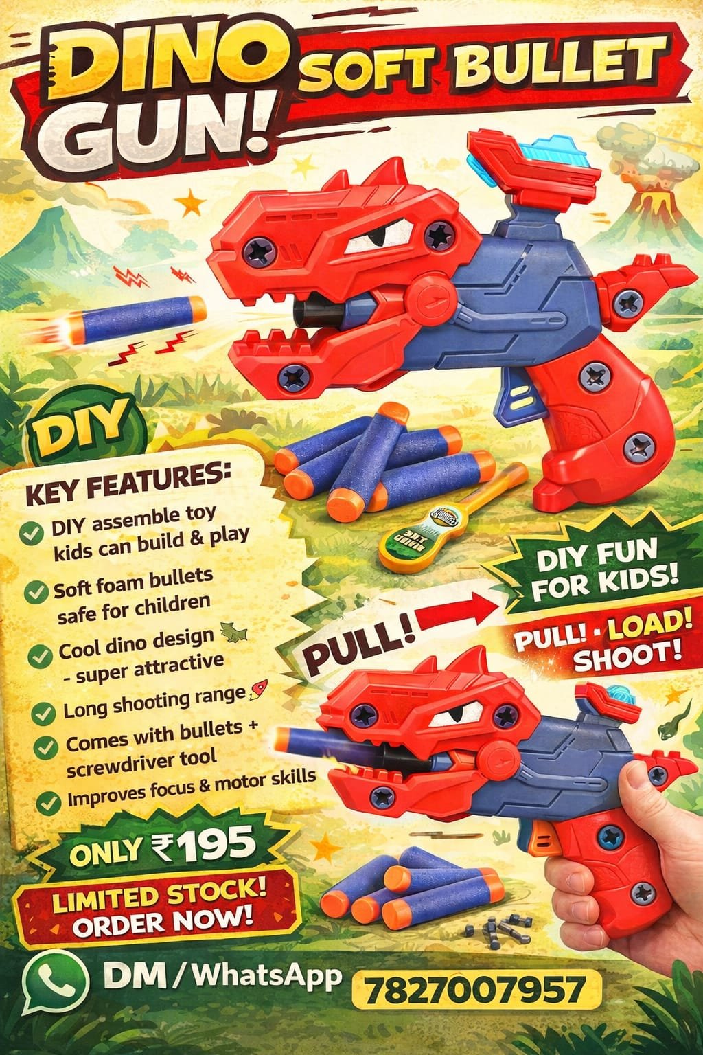 Make playtime super exciting with this Dinosaur Shooter Gun – perfect for kids who love action + creativity!