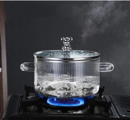 This clear ribbed glass pot is made from high-quality borosilicate glass, designed to handle direct flame, gas stove & oven use with ease.