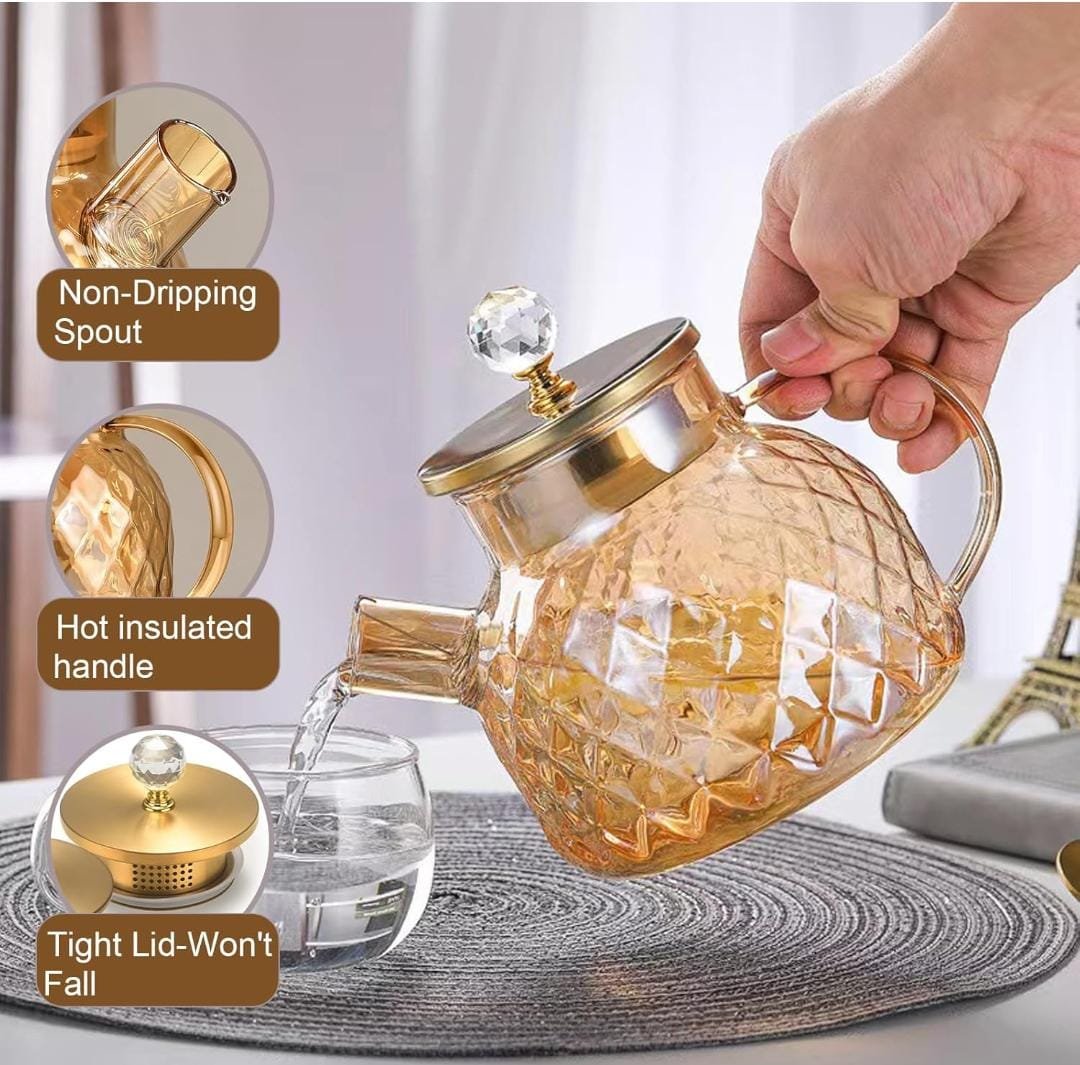 Esmi®- *Premium – Borosilicate Stove Glassware Teapot- Diamond Cut with Filter*
